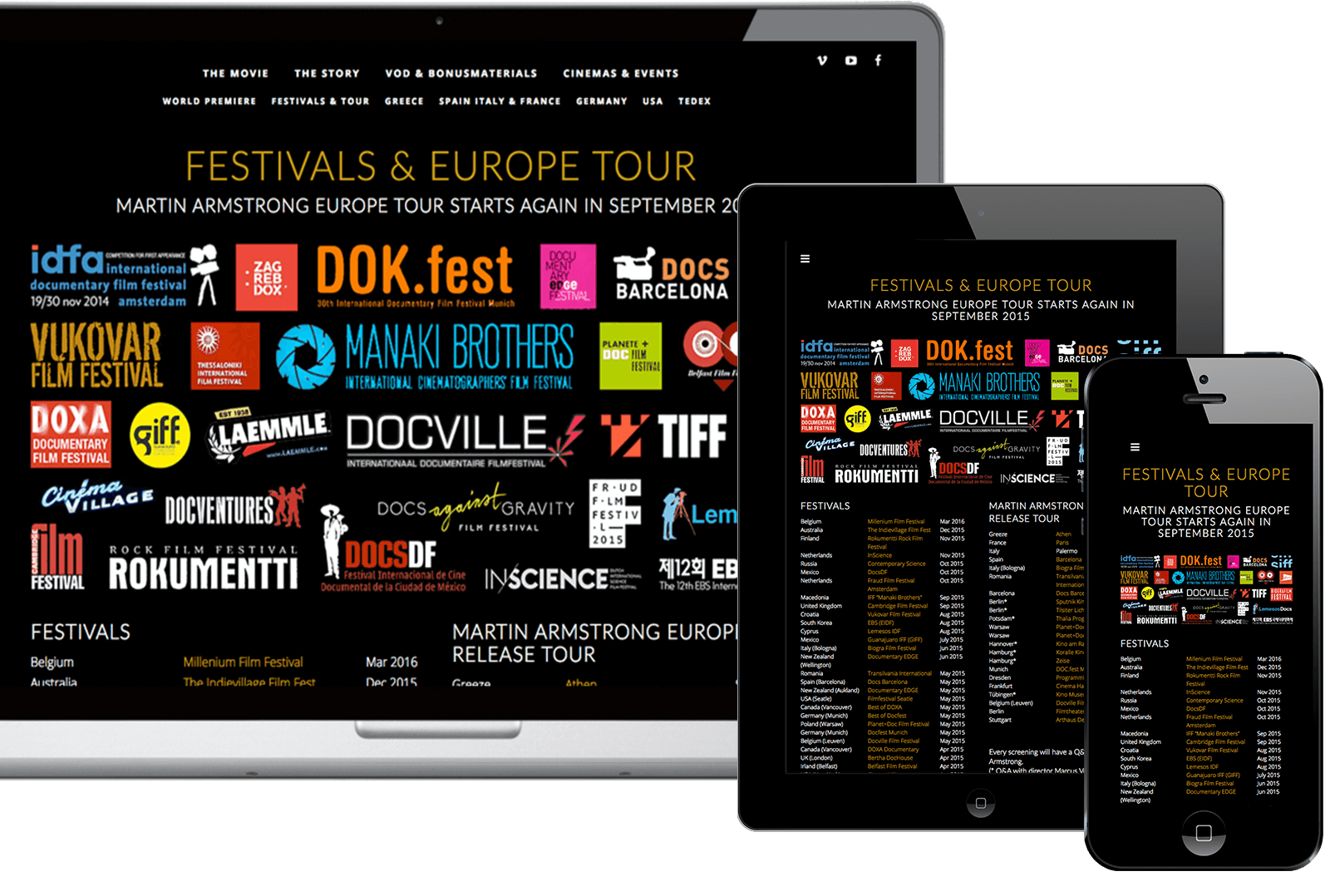 The final event of Martin Armstrong´s Europe Tour – the Greece Premiere in Athens 2015 – took place in Athens. The premiere was followed by a live podium discussion. This event was broadcasted live into 20 cities in 8 European countries including live translations into 5 languages. Cinemas have shown the film and streamed the discussion live after the screenings. People from all over the world could by a streaming ticket online through the website and watch the film and stream the live discusion at home.